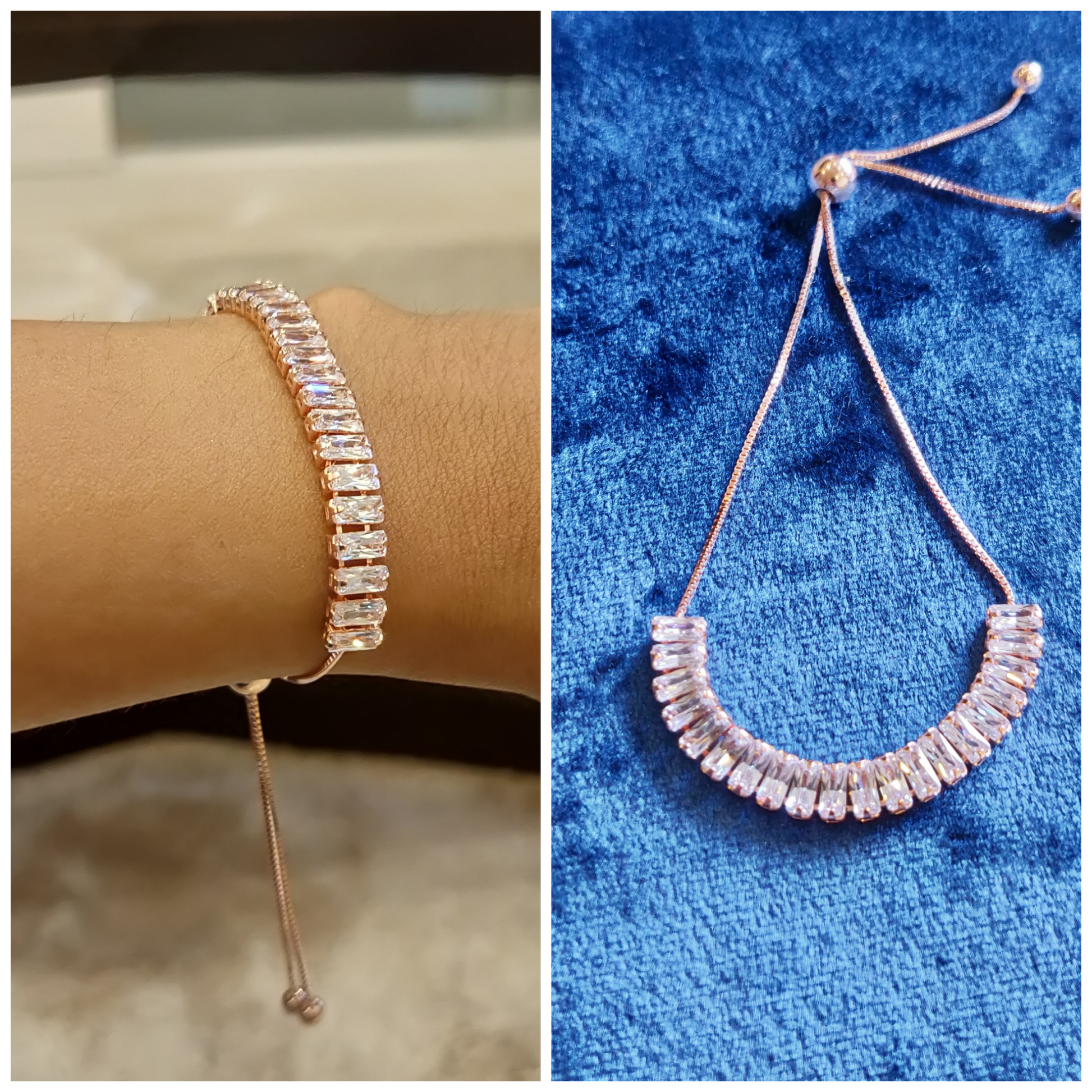 Adjustable Baguette Tennis Bracelet with Pull-Chain