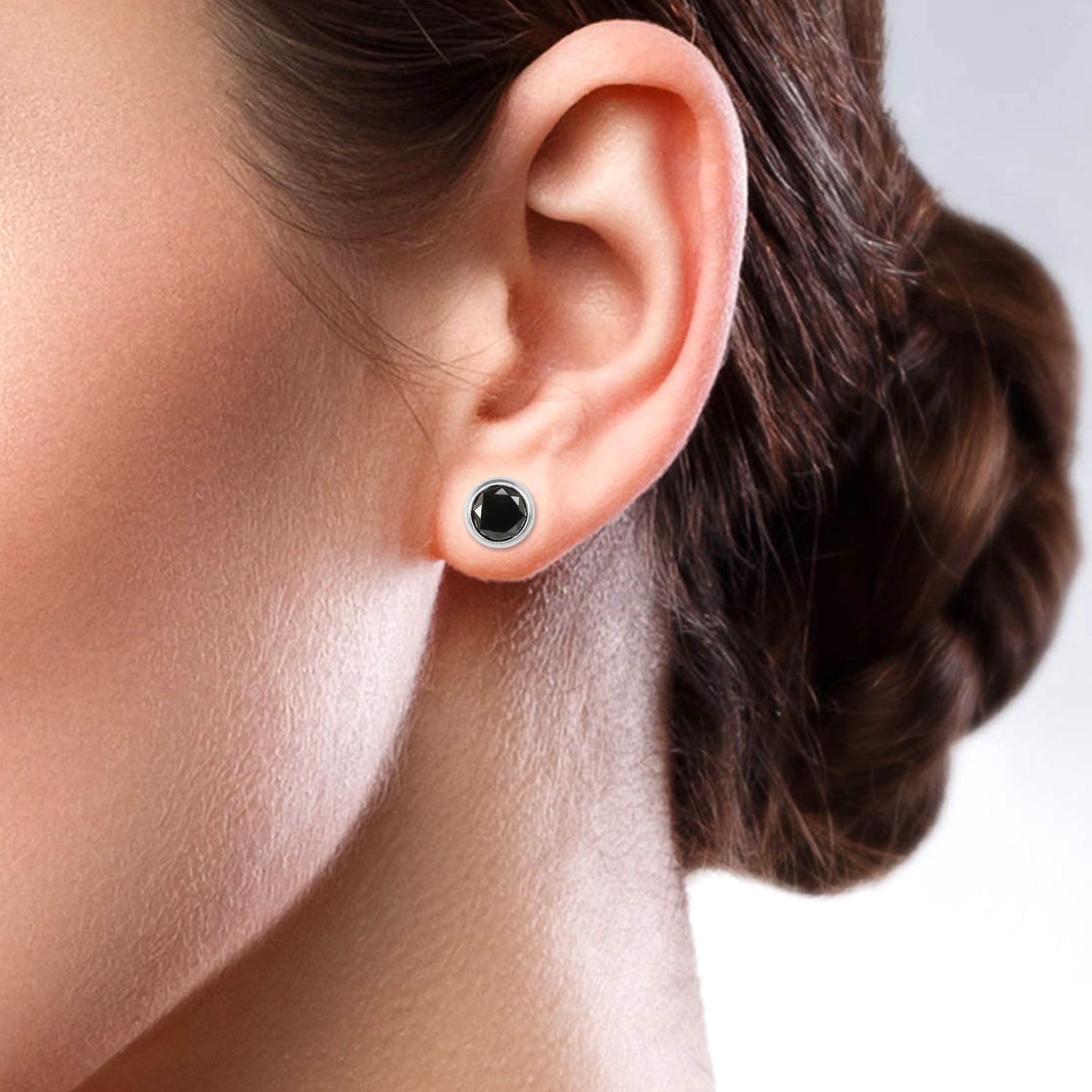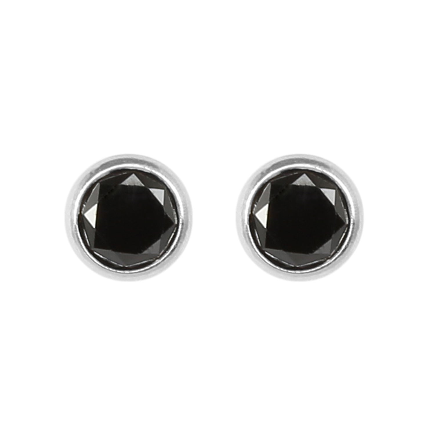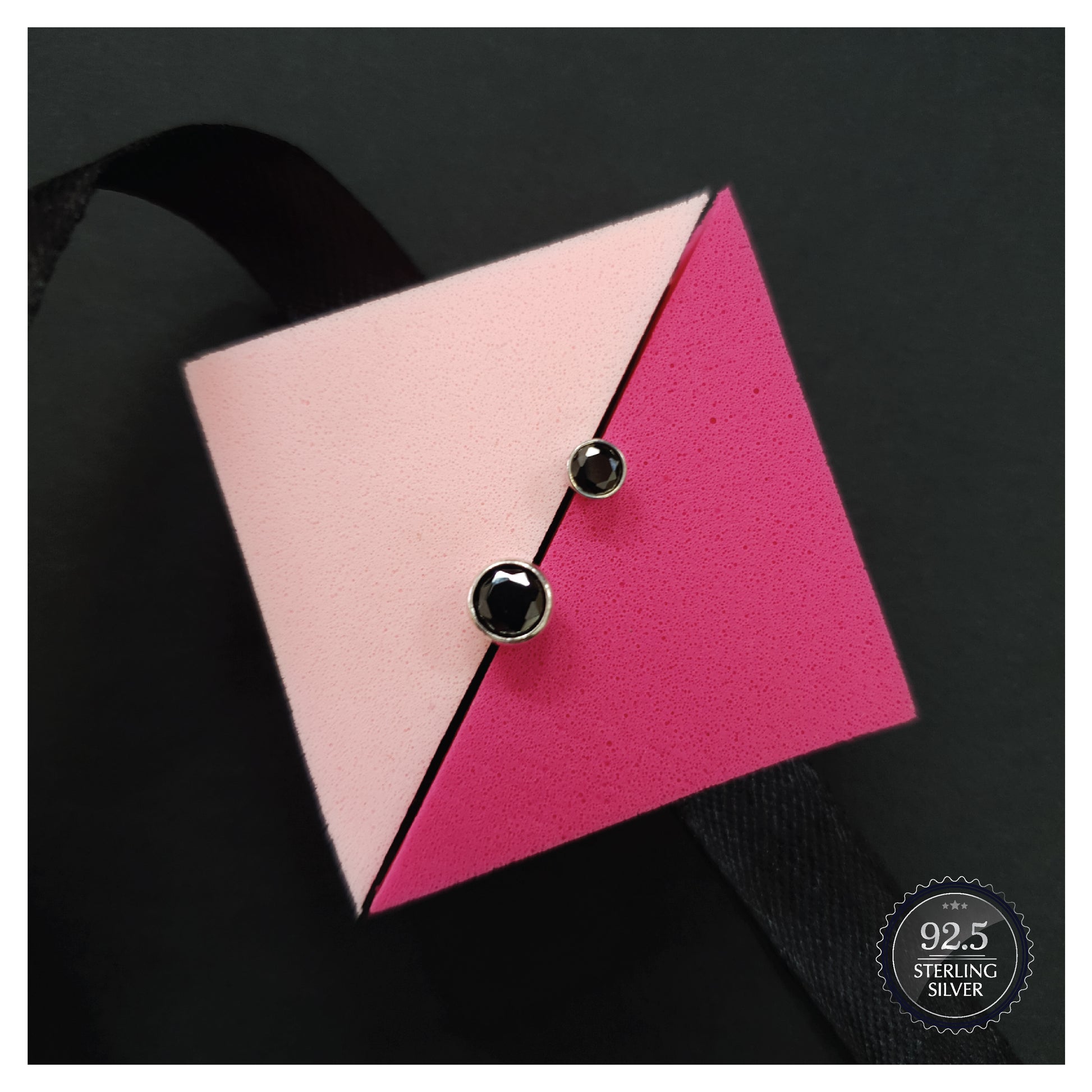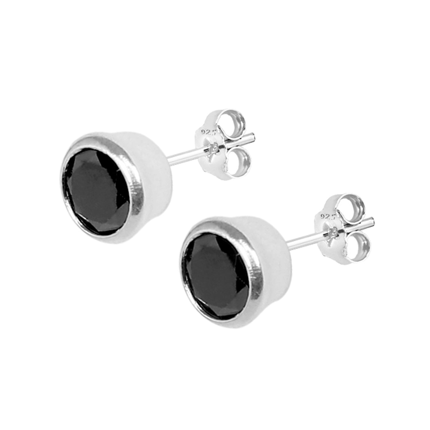 While small in size, these silver studs are anything but diminutive in sparkle! Lights bounce off the black cubic zirconia stone as it comfortably glistens in a rhodium-plated bezel setting. Edgy yet elegant, these studs work equally well with formal or informal outfits.