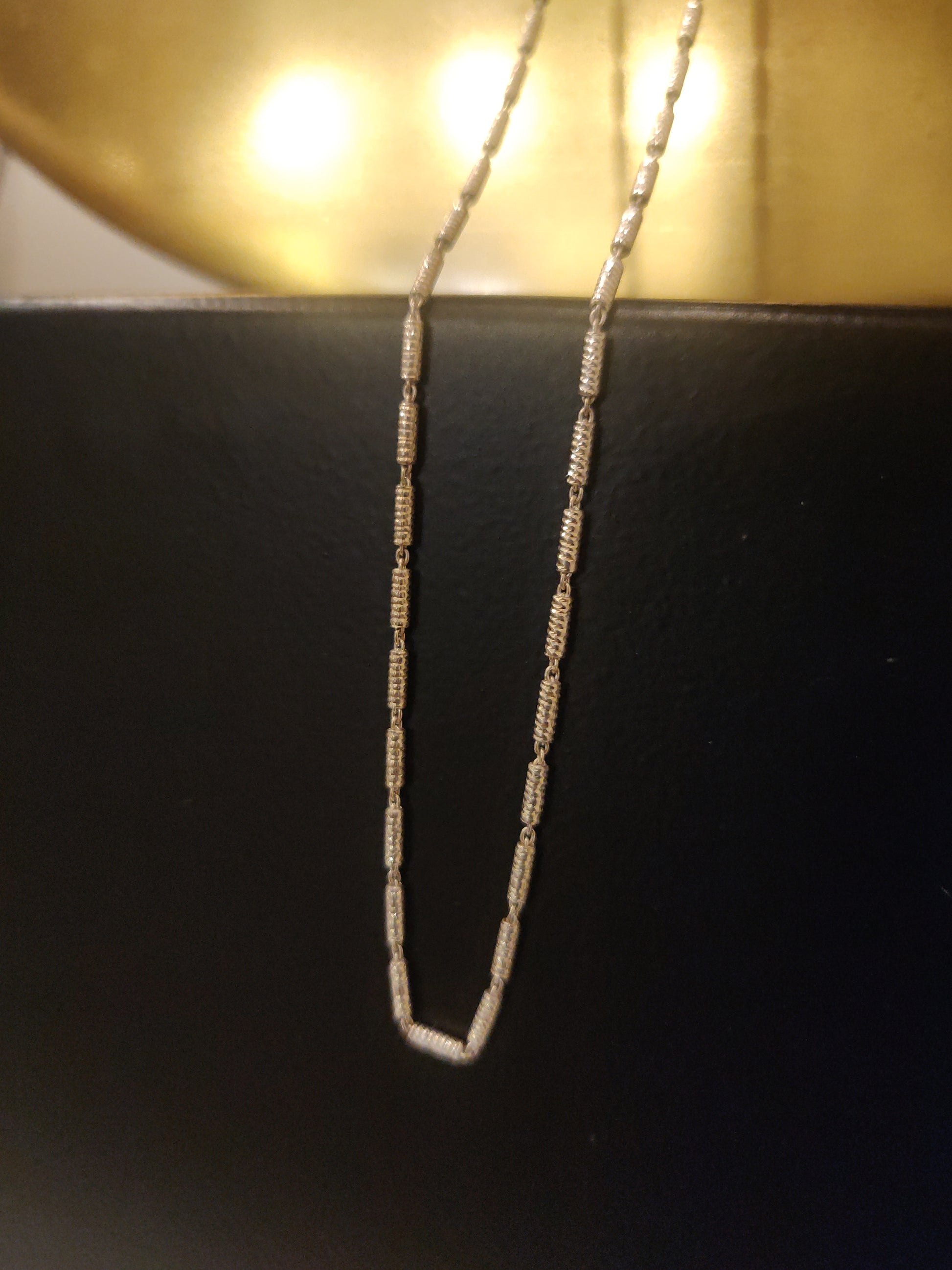 March to the beat of your own drum as you flaunt these intricately patterned cylindrical tubes, stringing along in a continuous loop. Leave a trail of awe and wonder as you hike through your day, with this contemporary piece of silver excellence.