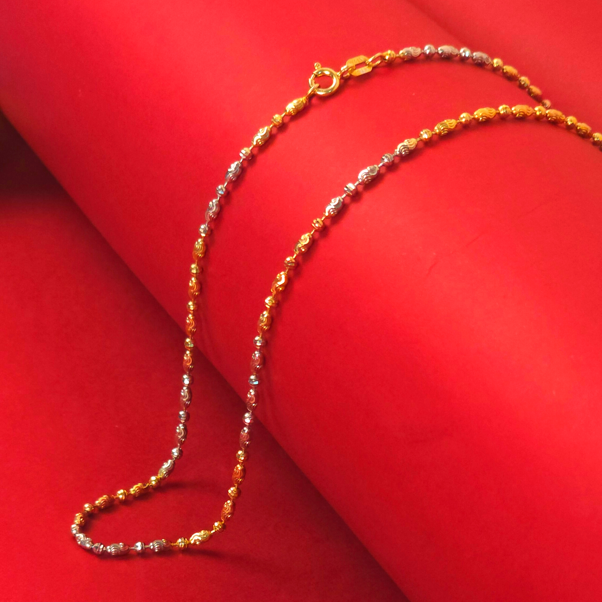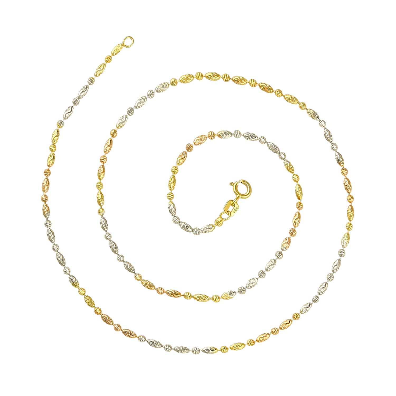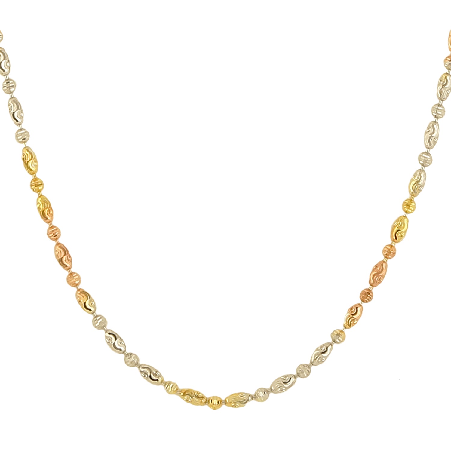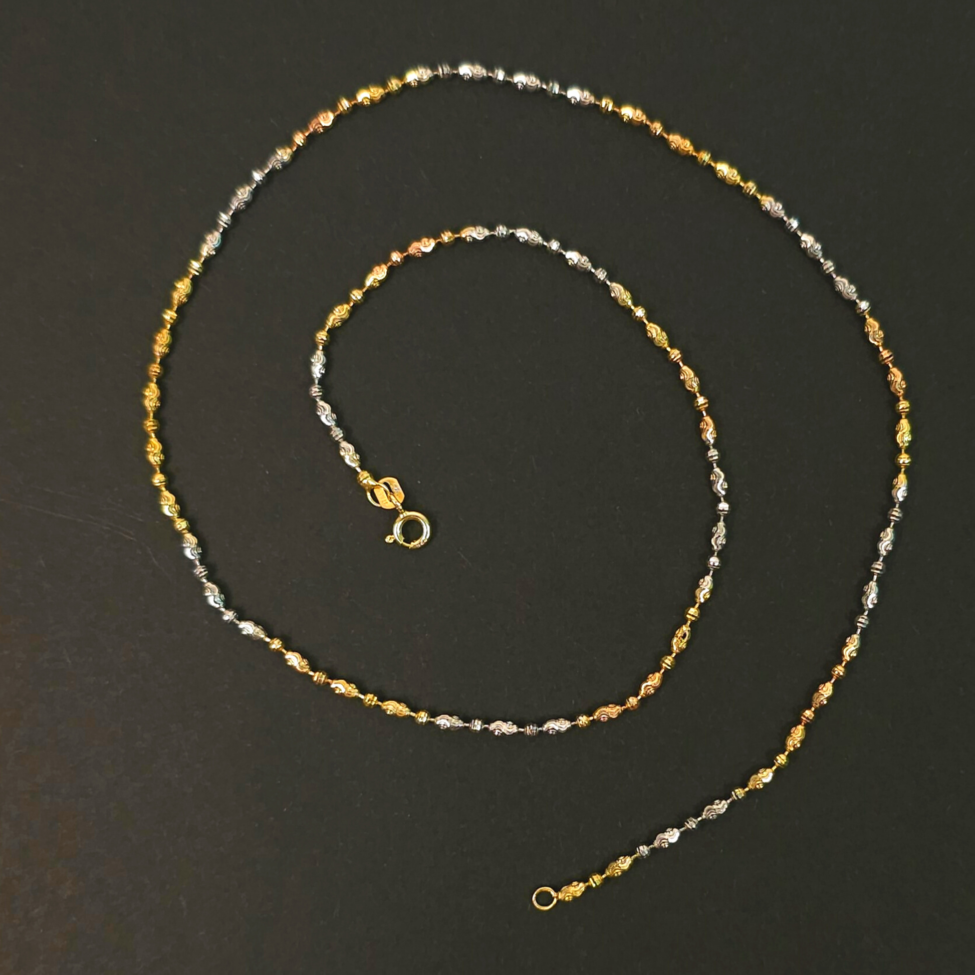 The scallop design chain features alternating silver, gold and rose gold plating to create a stunning contrast. Because of it’s multi-tone shades, this chain is a versatile addition to your accessories. Wear it solo or with a beautiful pendant and make a remarkable minimalist statement!