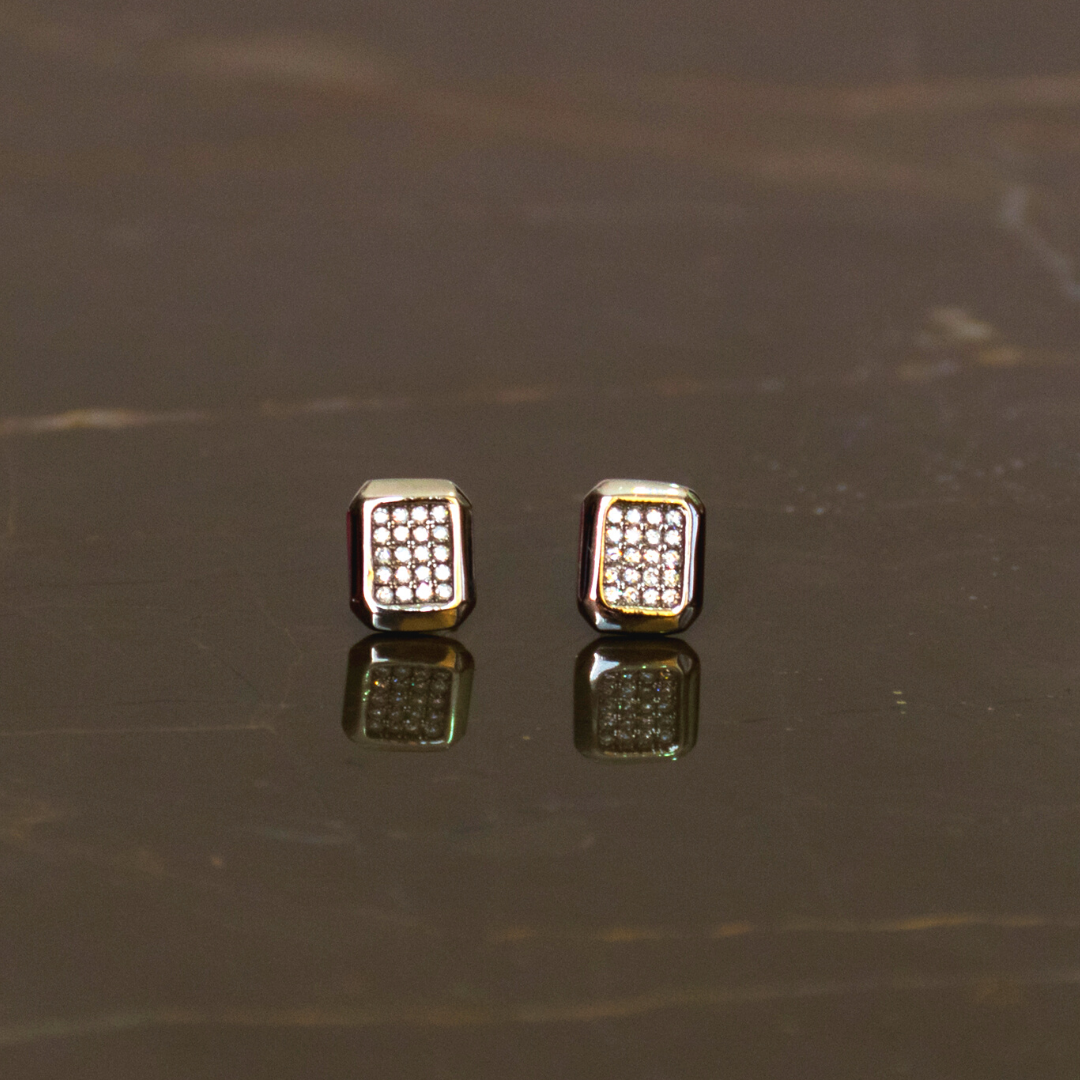 This pair of elegant silver-grey studs are netted to perfection with a checkered square pattern which radiates with shine. Crafted with dazzling cubic zirconia stones, these studs are apt for some understated charm.