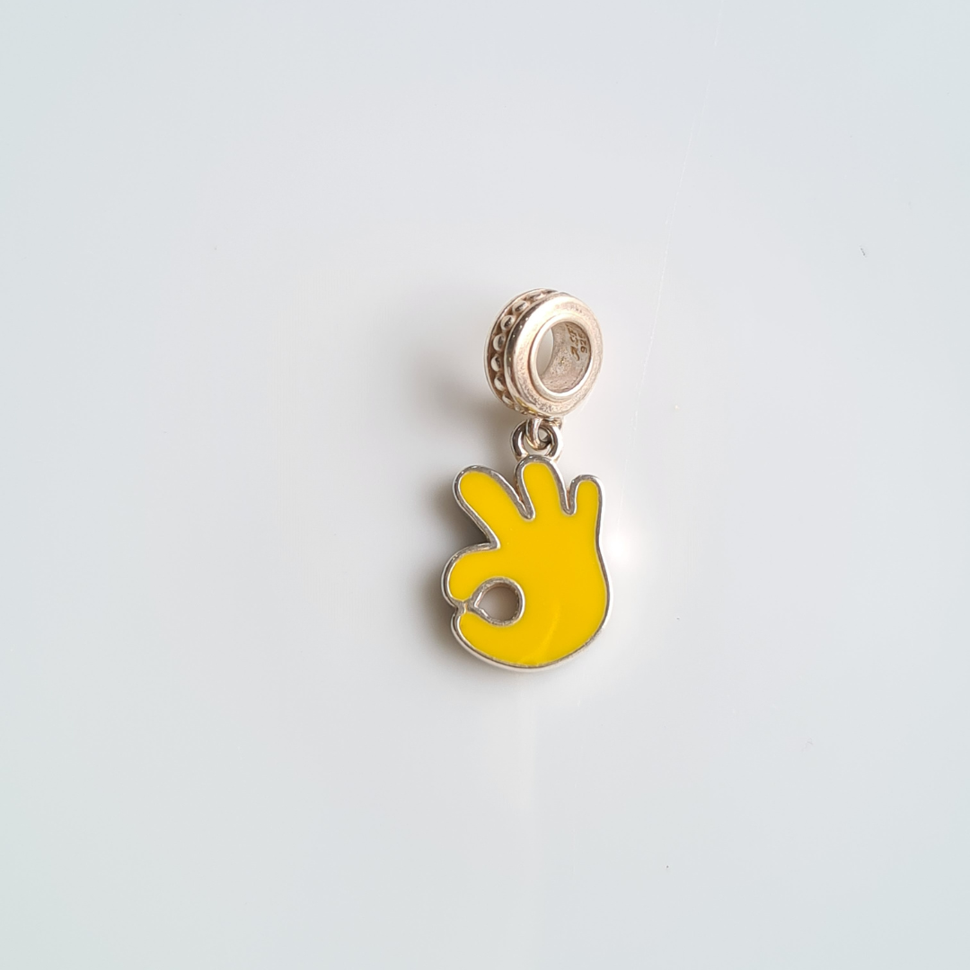 Finishing: Yellow Ok Hand Charm In Silver Finish