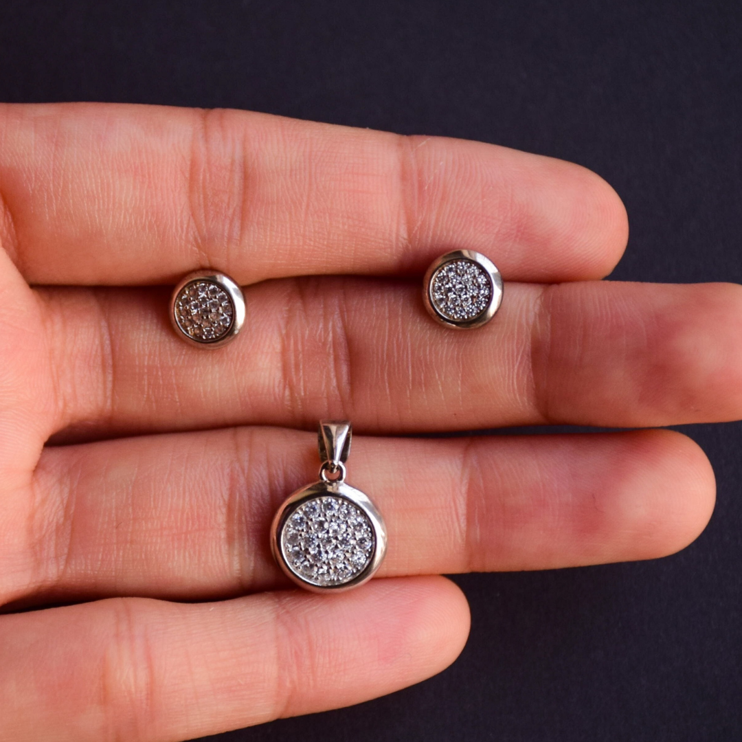Studded Round Pendant Earrings Set