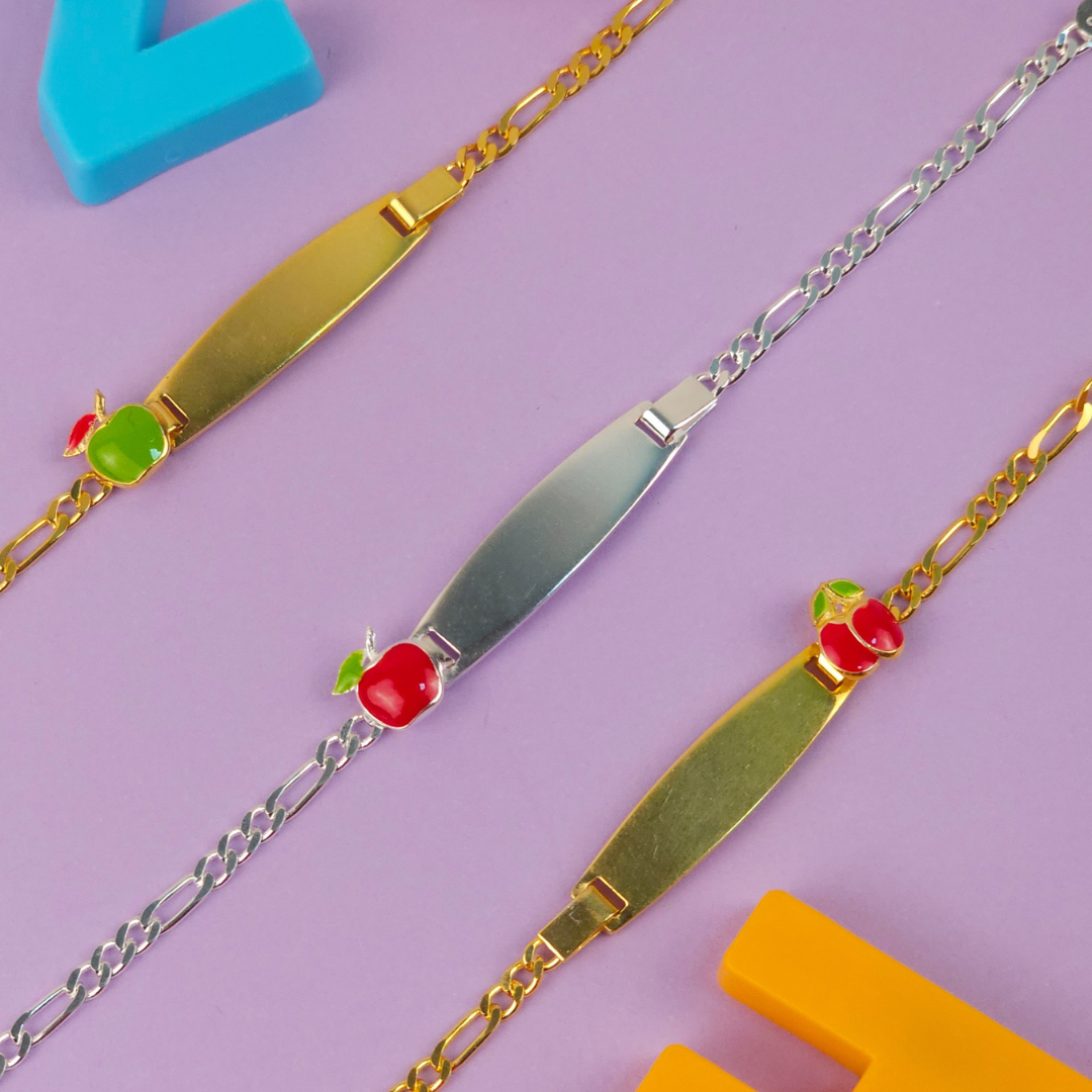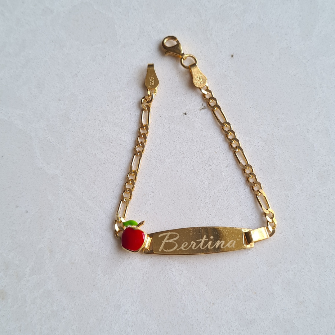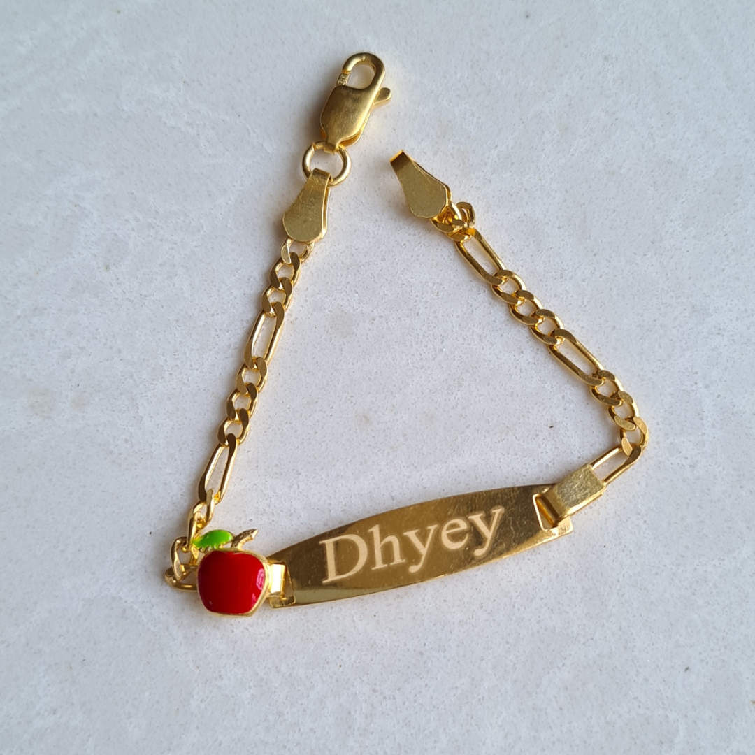 Personalised Apple Name Bracelet (Kids) (Gold Polish)