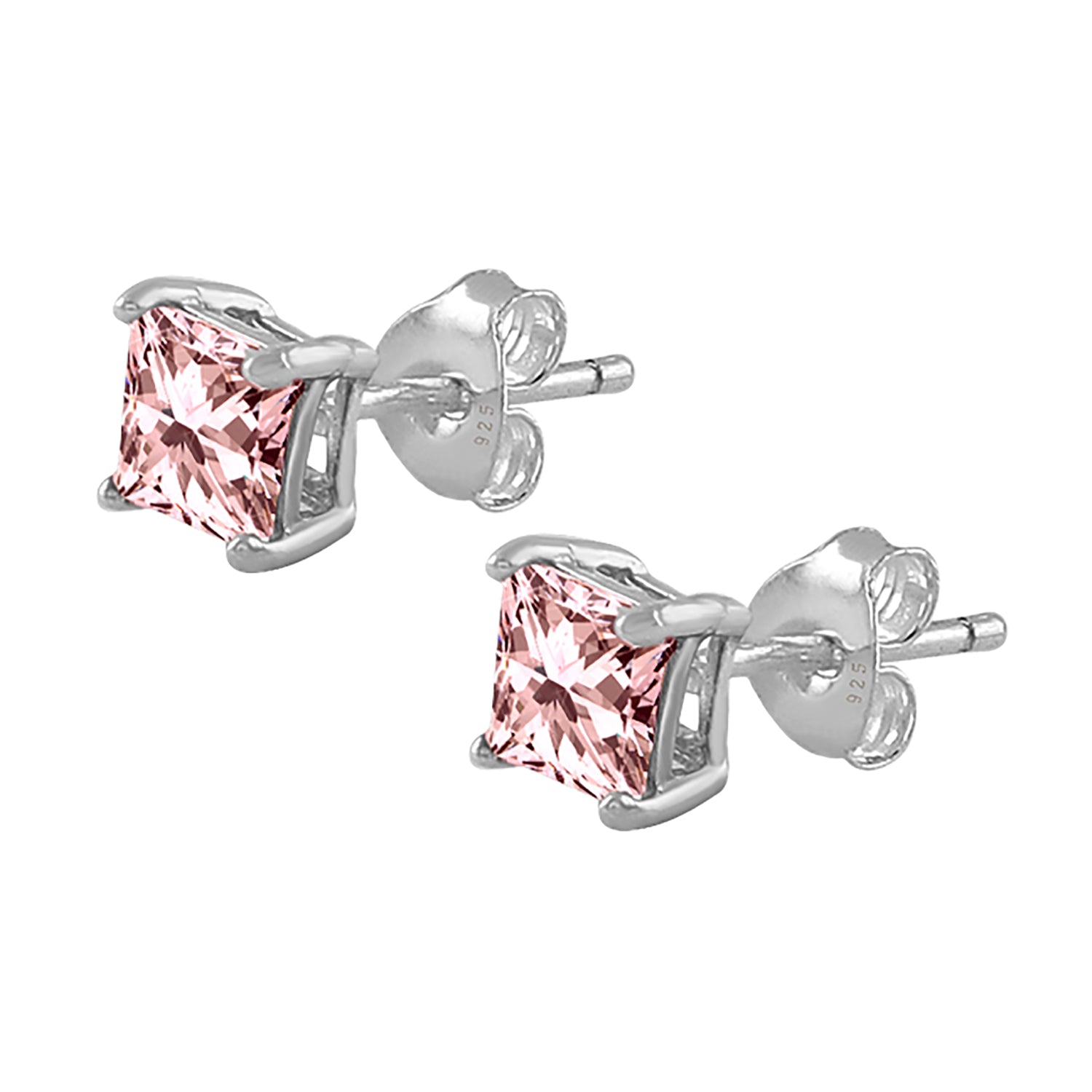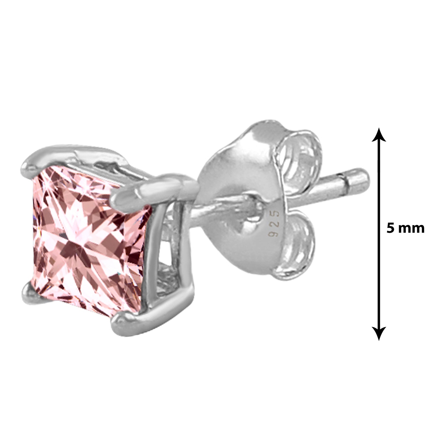 Glowing incandescently, these pink, princess-cut, cubic zirconia studs in a 4-prong basket setting, will illuminate your face brighter than a highlighter! Oozing luxurious style, these enchanting, silver studs are a crowd-puller.