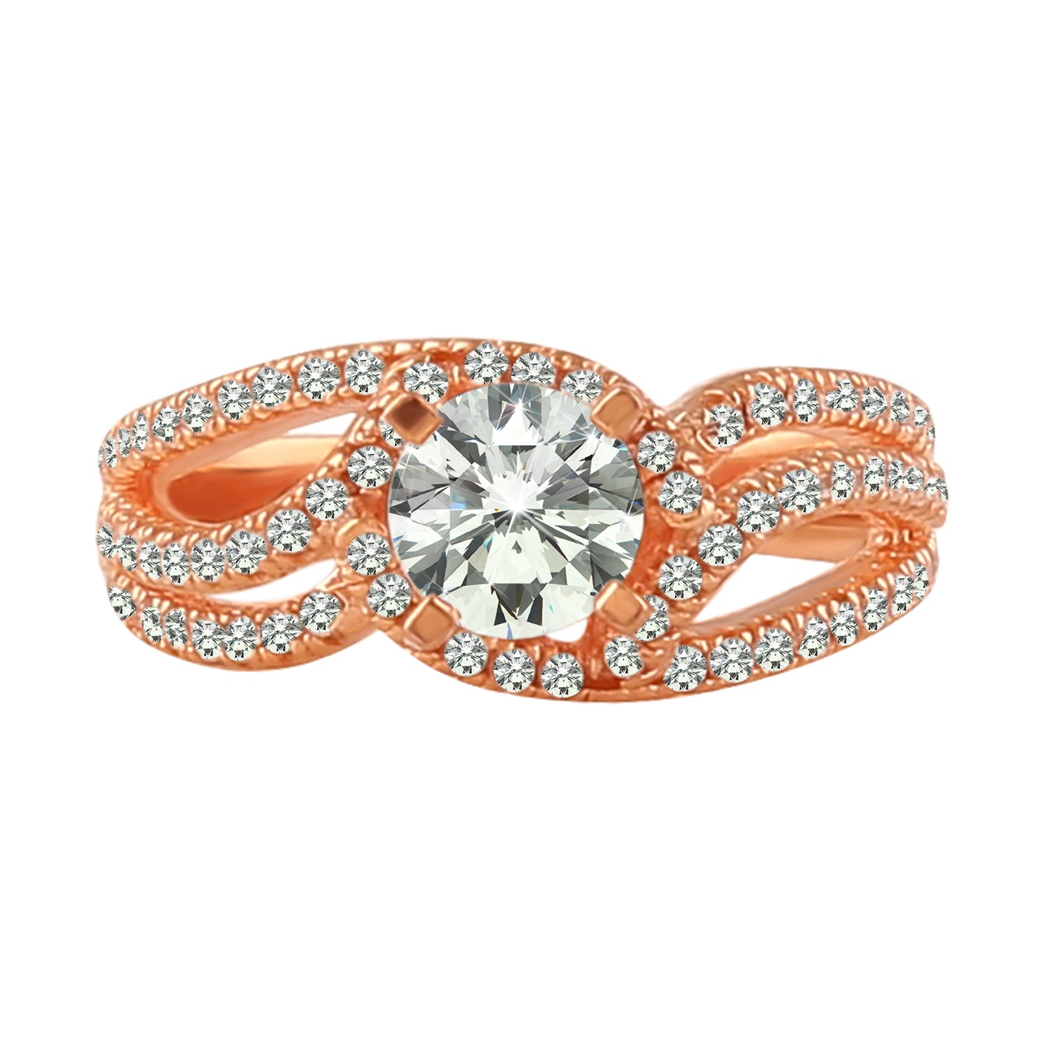 When modern eccentricity and sophisticated elegance fuse together, a bohemian, luxe, silver ring is fabricated. Lavished with shimmering round cut cubic zirconia stones, this 2 in 1 rose-gold plated ring has a mesmerising artistic flair. Turn heads for all the right reasons and make a serious style statement with this one-of-a-kind striking design!