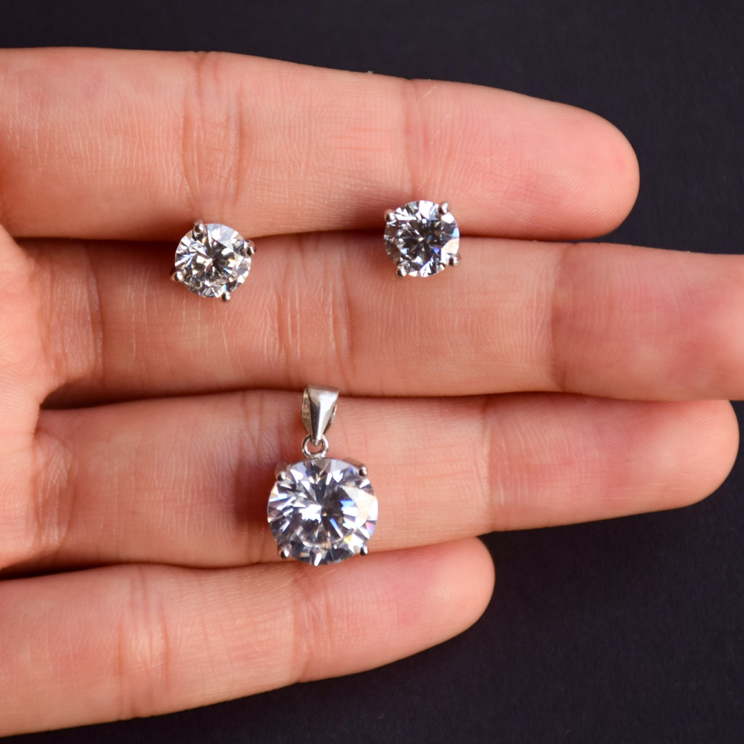 Round Solitaire Pendant Earrings Set