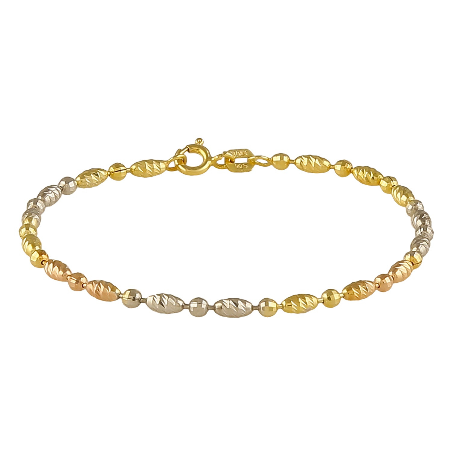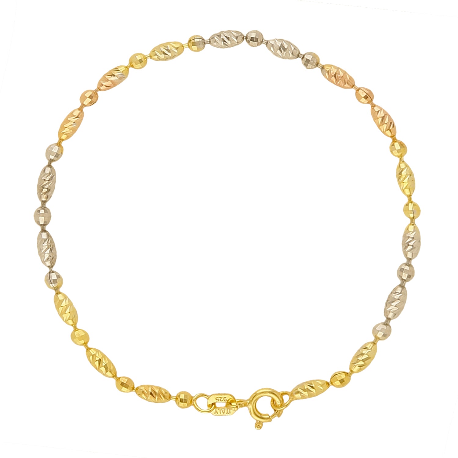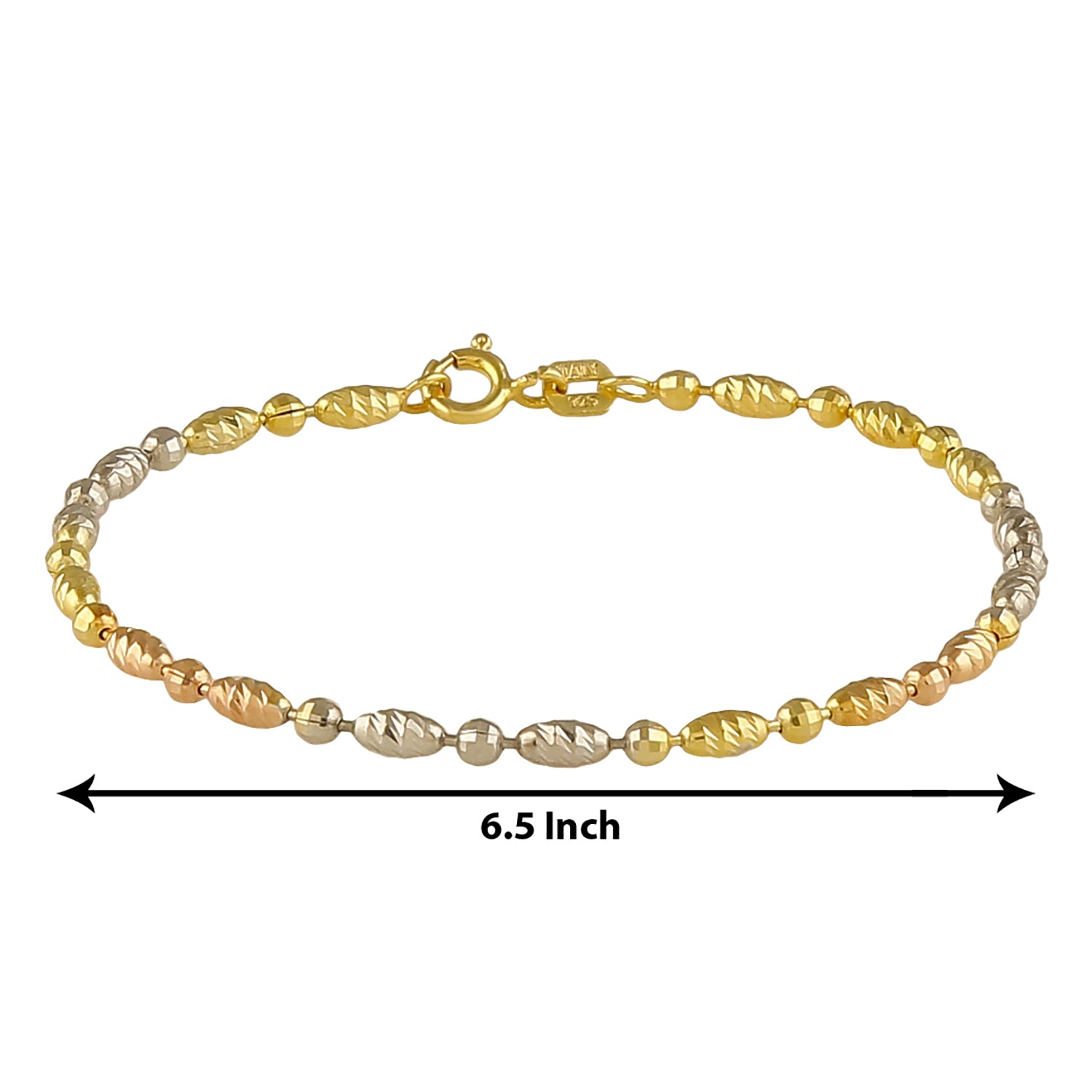 The scallop design bracelet features alternating silver, gold and rose gold plating to create a stunning contrast. Because of it’s multi-tone shades, this bracelet is a versatile addition to your accessories and is perfect for both Indian and western outfits.