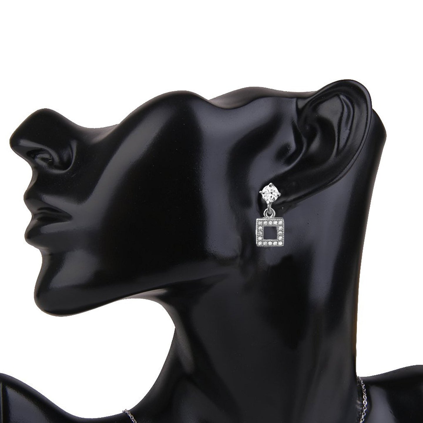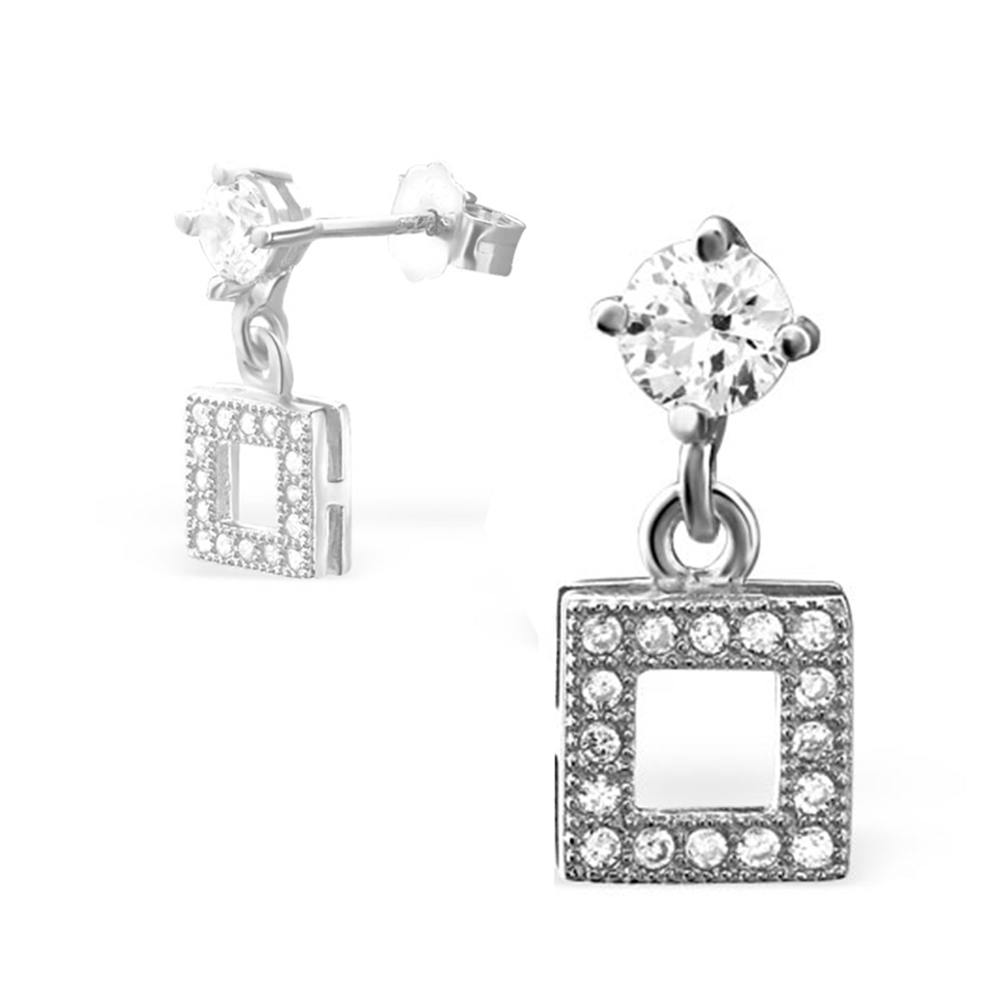 Like those glow-in-the-dark LED sign boards, these rhodium plated, stud-with-hanging silver earrings are surely attention-grabbing! These lightweight earrings radiate with effortless charm and delicateness.