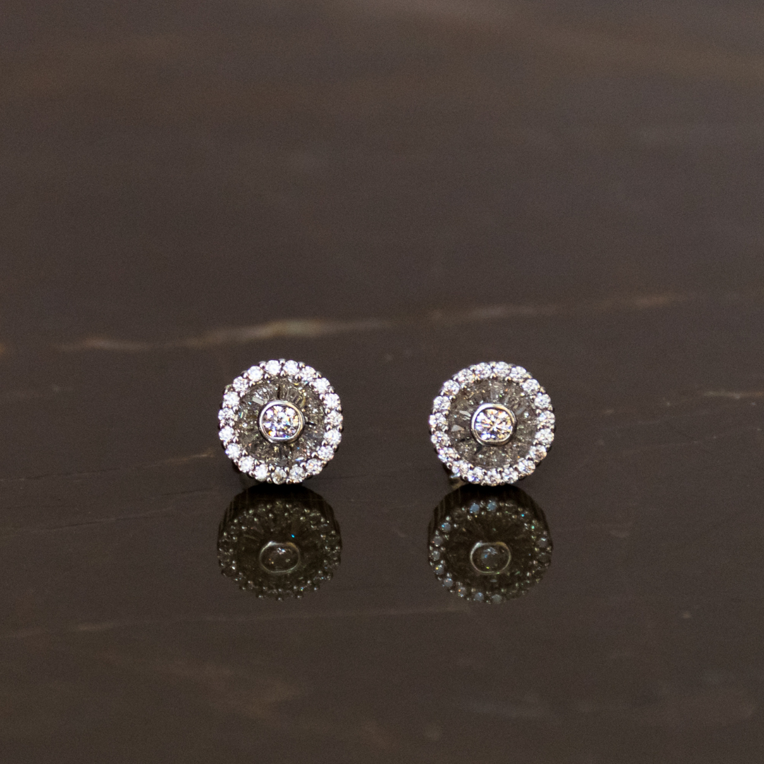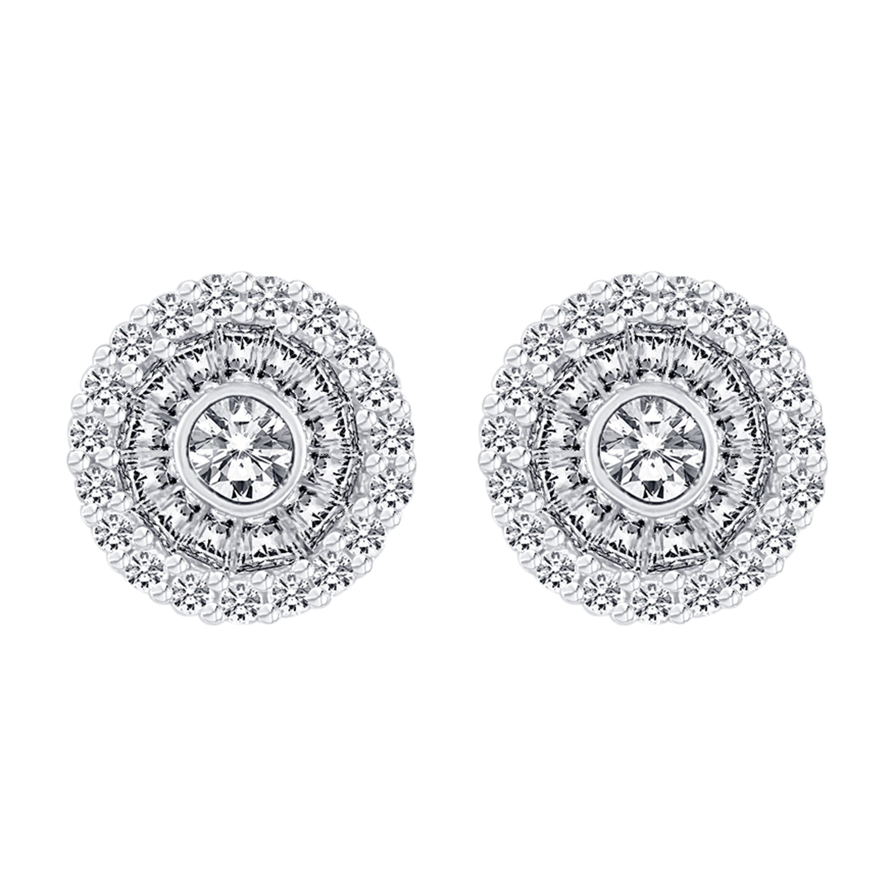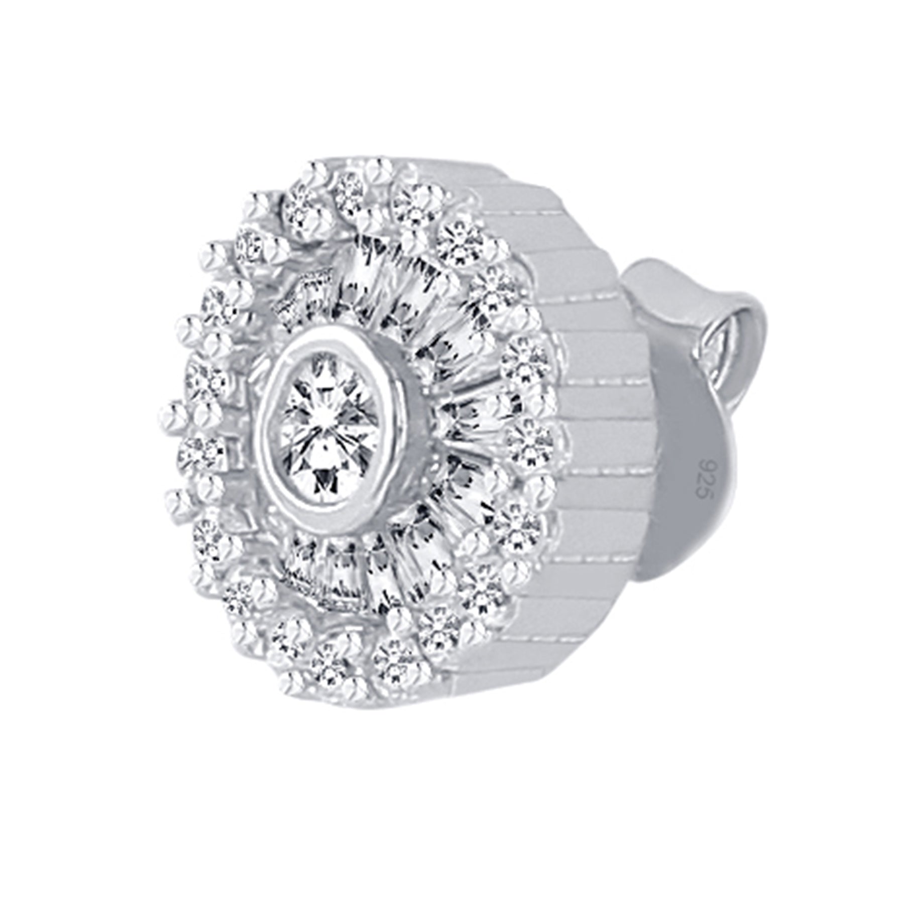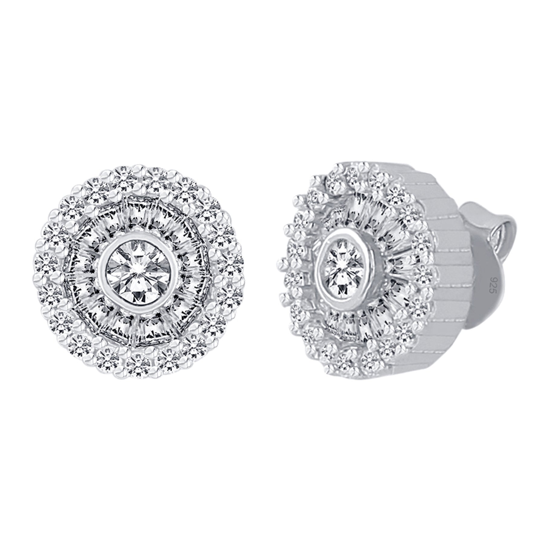 The warm hues of bezel-set, silver stud earrings feature shimmering cubic zirconia stones, crafted in silver tone and are a perfect swap for diamond solitaires without being heavy on the lobe or on the pocket!